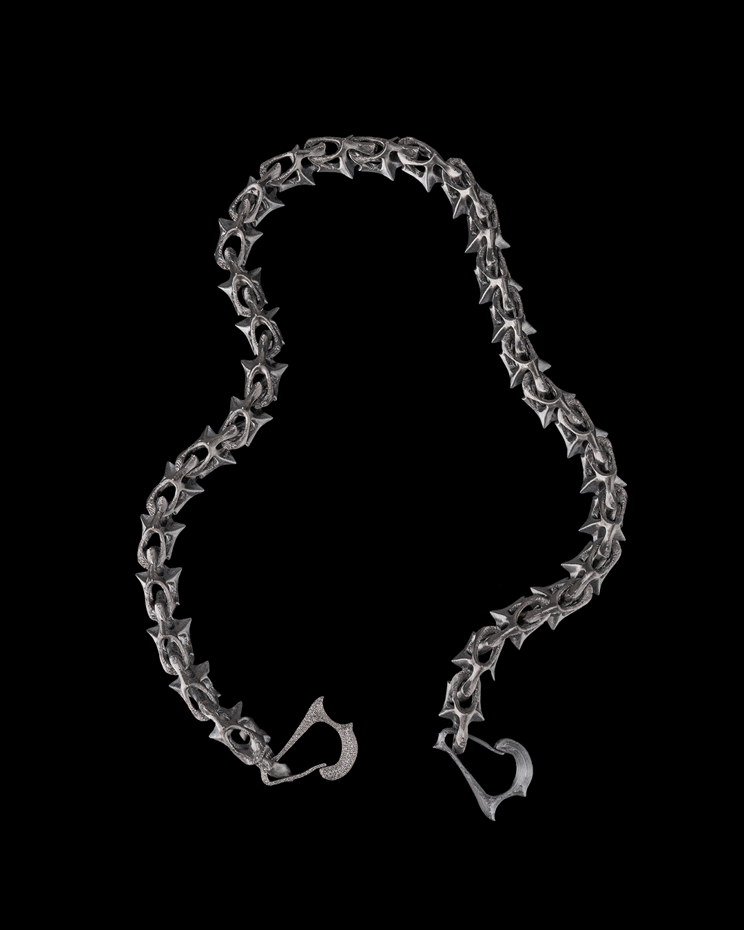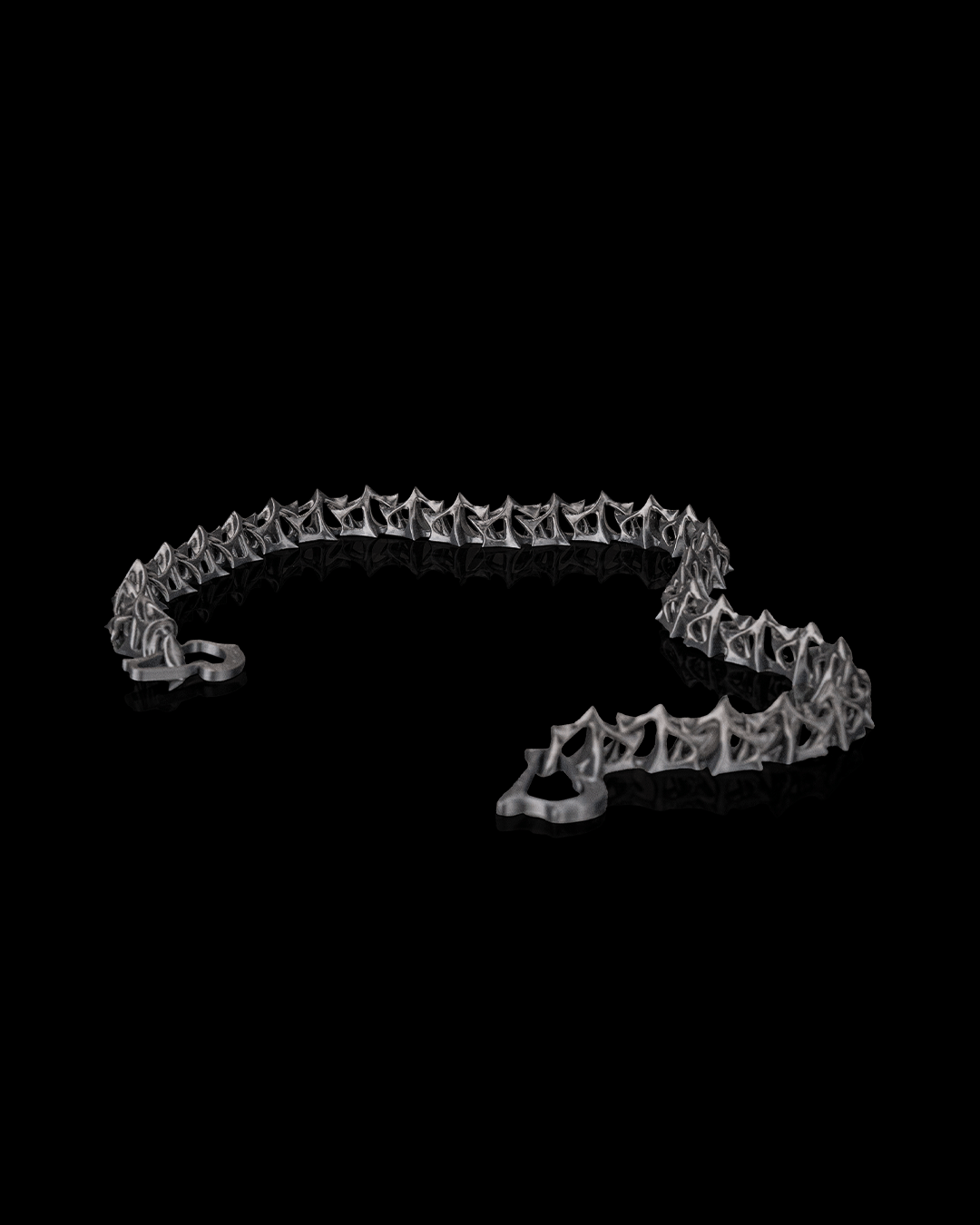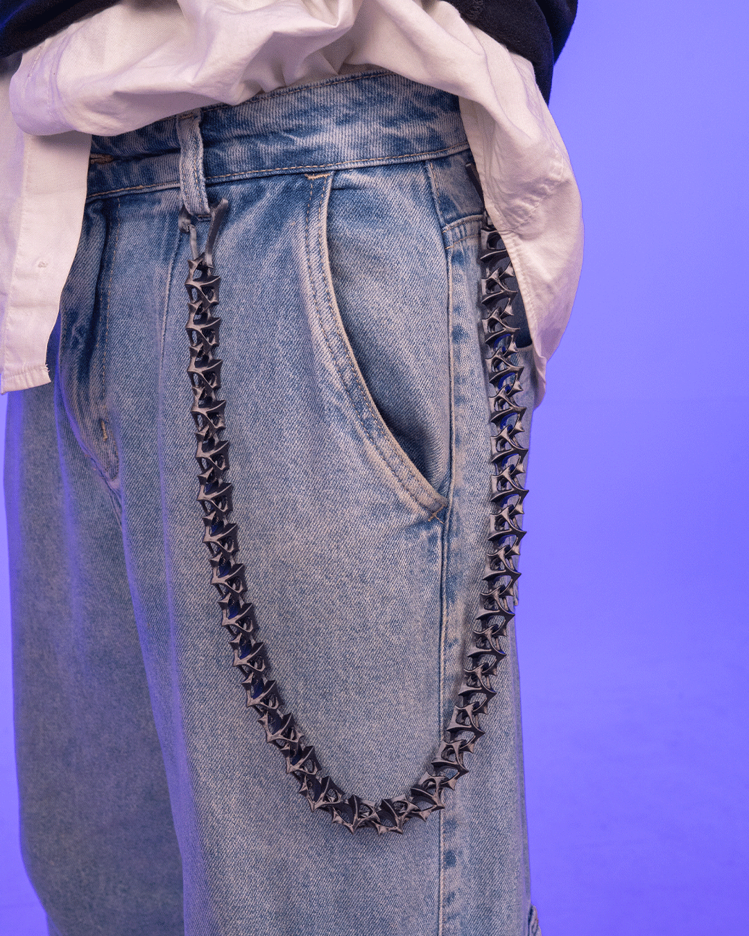 Diese außergewöhnliche Hosenkette vereint organisches Design mit kantigem Style. Jeder einzelne Spike ist präzise im 3D-Druckverfahren gefertigt und fügt sich zu einer einzigartigen Kette zusammen, die garantiert Blicke auf sich zieht.